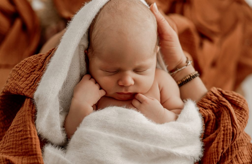 Die beste Zeit ist zwischen dem 5. und 21. Lebenstag. Das ist die Zeit, in der die meisten Neugeborenen noch sehr viel schlafen und wir entspannt Kuschelbilder und Detailaufnahmen von Händen und Füßen machen können.